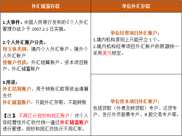 3.外汇储蓄存款and单位外汇存款: