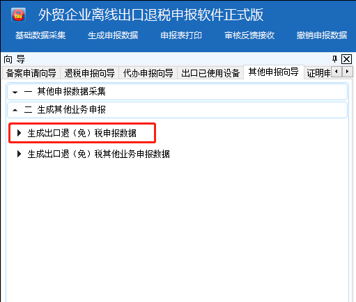 然后点击“生成其他业务申报”,选择“生成出口退(免)税申报数据”,生成申报数据。