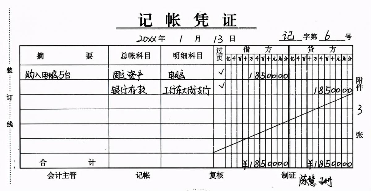 4、13日购入电脑5台,每台3700元,可用3年,残值100元/台,款项已付(取得的是增值税普通发票,以上是价税合计)。(经济业务)
