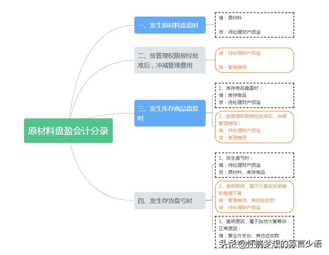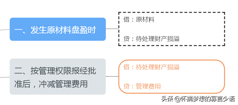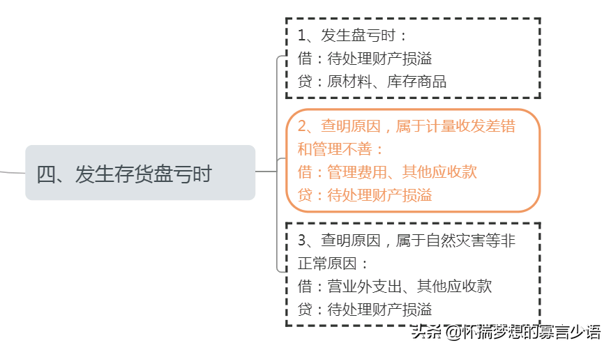 四、如果“原材料”或“库存商品”发生盘亏,应作如下分录: