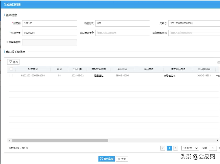 完成步骤一后,即可在“外贸企业出口退税出口明细申报表”和“外贸企业出口退税出口明细申报表”查看对应的明细。数据检查通过即表示数据正常,报关单生成明细确认。