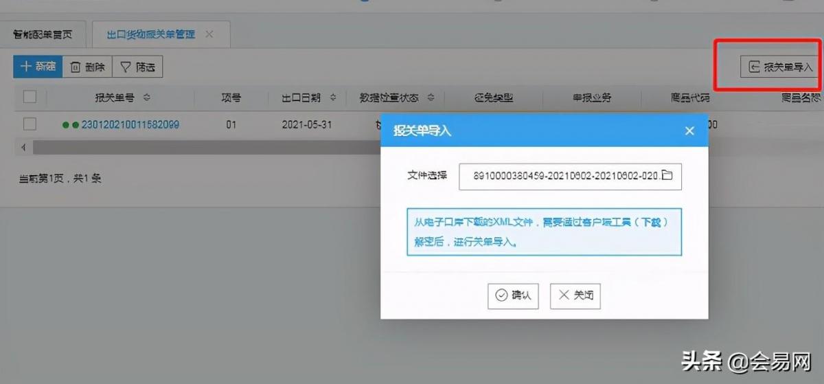 2、出口货物报关单的管理。可选择报关单导入 (在电子口岸下载需通过客户端工具解压后导入),或者新建报关单,按纸质或下载的报关单手工录入。 *号部分为必录项目,注意:法定单位和法定数量要与报关单上一致。如下图所示: