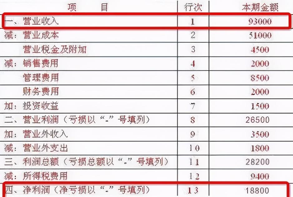 我随便找了个利润表,大家可以看到一个公司有营业收入,扣掉各种营业成本,还有各种费用,各种税收,最后剩下的是净利润。