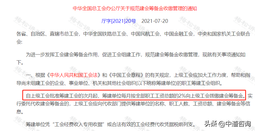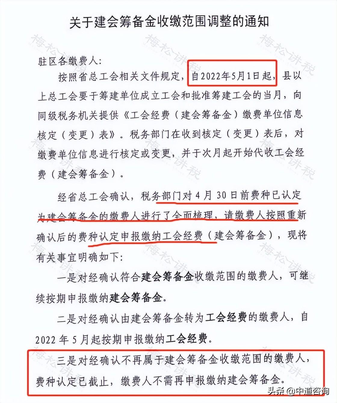 但,实务中,各地执行政策中存在差异,有很多来自河南、四川、河北等朋友反馈,现未建立工会,仍在征收工会建会筹备金,所以,具体还需以当地政策为准。