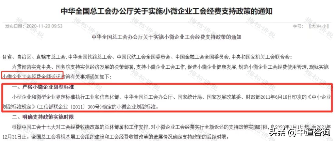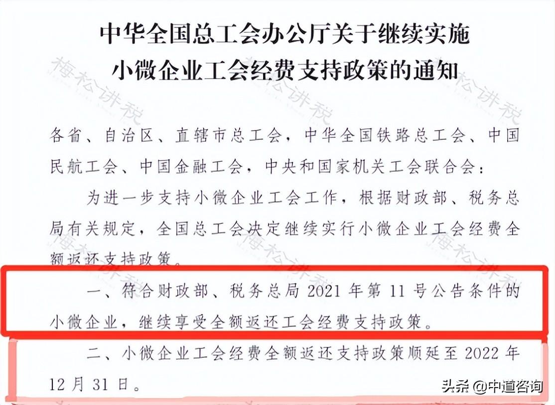 而此次延期文件,只有符合财政部、税务总局2021年第11号公告的小微企业,才能继续享受工会经费全额返还。