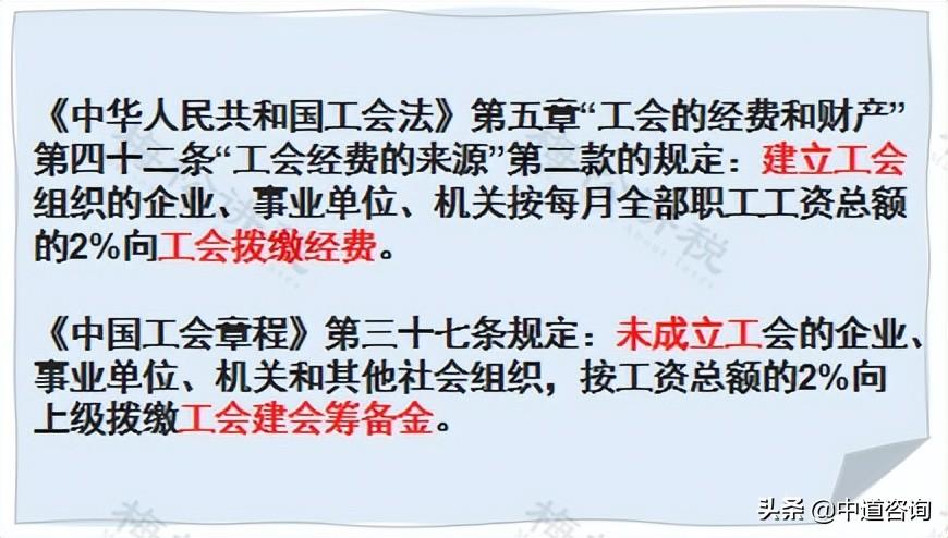 2、未成立工会的企业,按工资总额的2%缴纳工会建会筹备金。