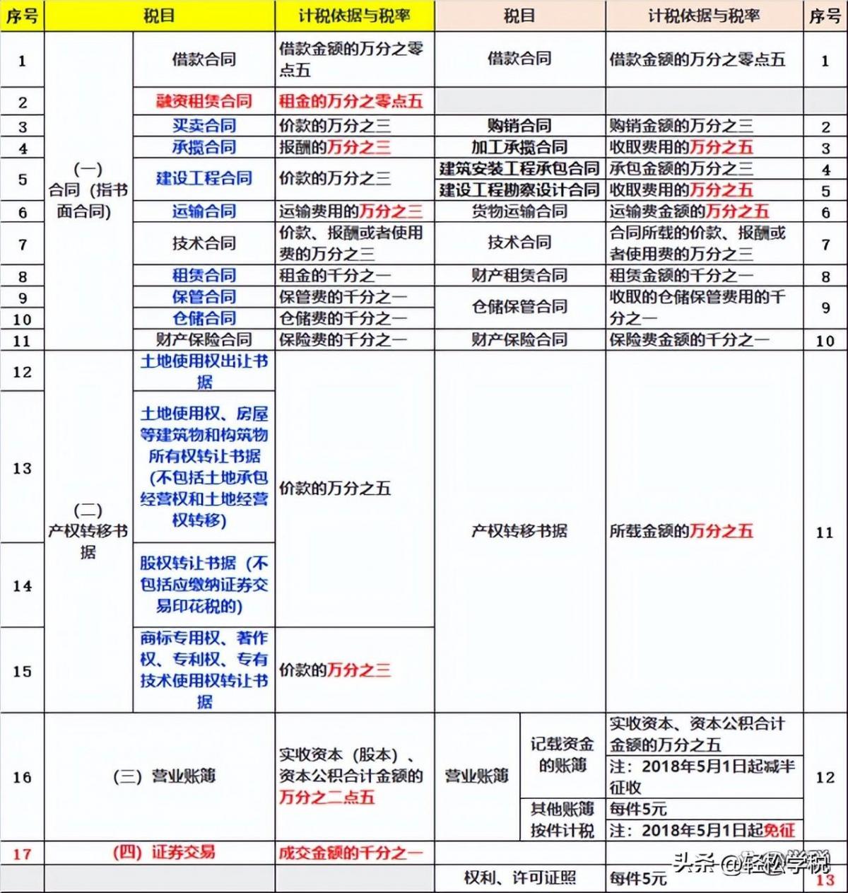 一、印花税税目和税率变了