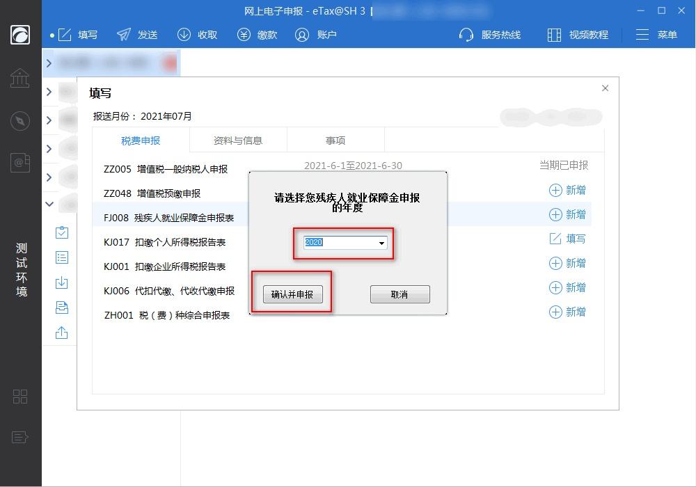 选择需要进行申报的残保金所属年度,点击【确认并申报】。