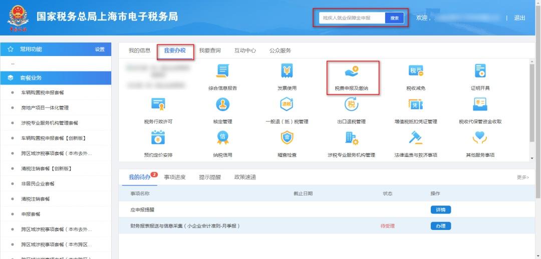 搜索【残疾人就业保障金申报】或通过:我要办税—税费申报及缴纳—非税申报—【残疾人就业保障金申报】进入残保金申报模块。