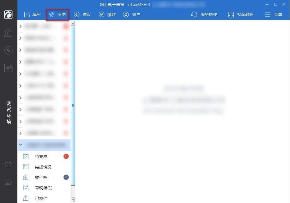 在客户端主界面,选中已保存好申报表的单位,点击【发送】。