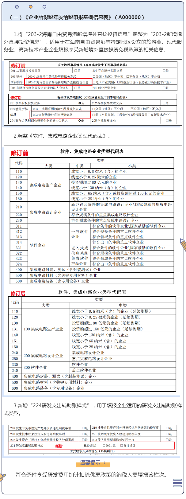 接下来是有关企业所得税汇算清缴年报填写的内容!企业所得税汇算清缴年度纳税申报表的填写有10个表格修订了内容,下面是具体的变化汇总以及修订后的填写说明,不清楚,借此机会瞅瞅吧!