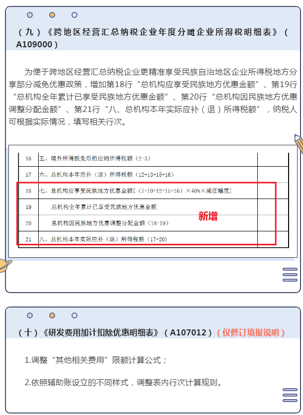 三、企业所得税汇算清缴修订的部分表单及填报说明