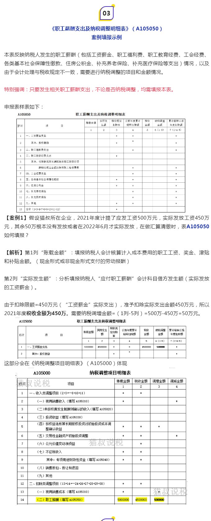 五、《职工薪酬支出及纳税调整明细表》(A105050)案例填报示例