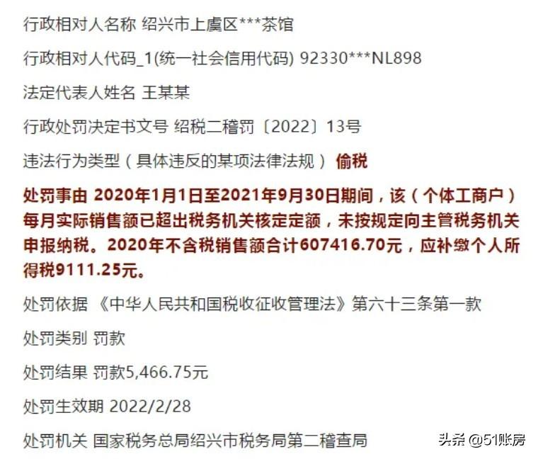 别以为是小五危言耸听,目前已有多家个体户超过定额不申报被认定为偷税!