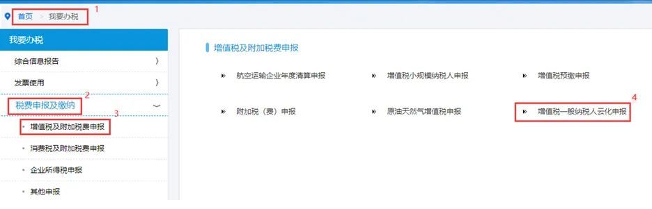 步骤一:登录【国家税务总局上海市电子税务局】-首页【我要办税】-【税费申报及缴纳】-【增值税及附加税费申报】-【增值税一般纳税人云化申报】,点击此模块会显示本期的开票和发票抵扣情况,可进入引导式或填表式进行申报表填写;
