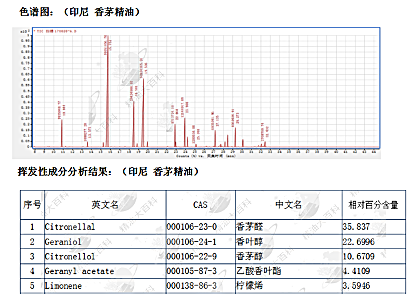 香茅醛、香叶醇、香茅醇、乙酸香叶酯、柠檬烯