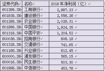 金融机构利润排名