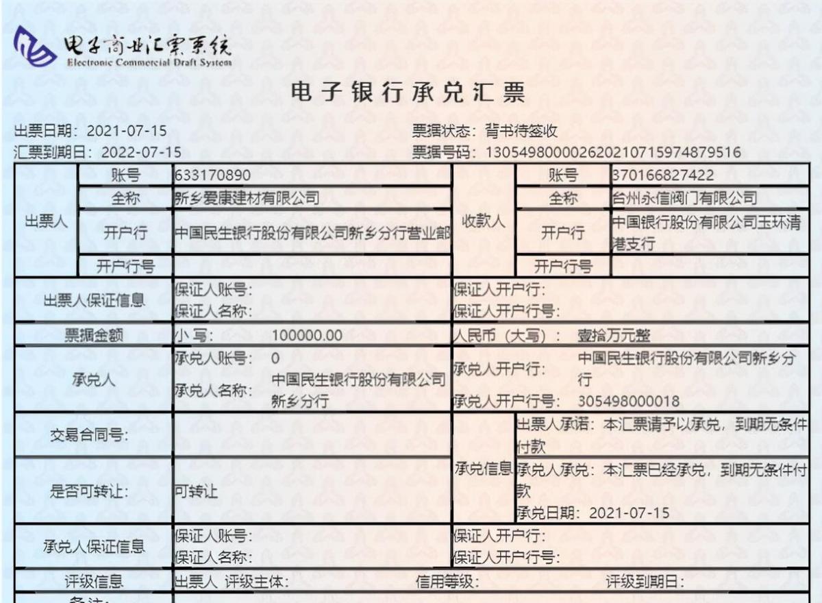 以中国民生银行股份有限公司新乡分行营业部这一银行承兑汇票为例