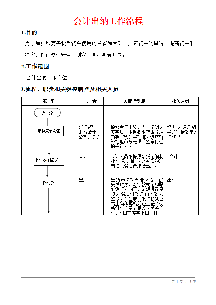 出纳的工作流程:审核原始凭证、制作收付款凭证、收付款…