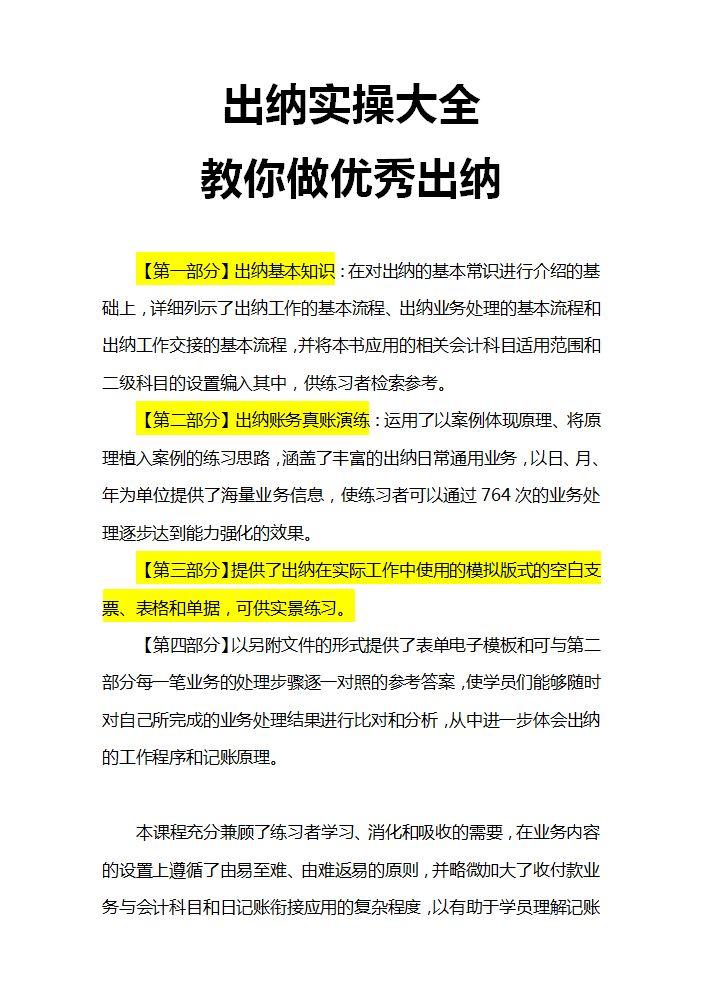 今天就给整理了一本出纳实操大全,一共150页,可以看下目录,很全,出纳的工作内容和程序,账务处理,现金业务,银行业务,以及情景演练。真是没法说得全乎。(文末可抱走)