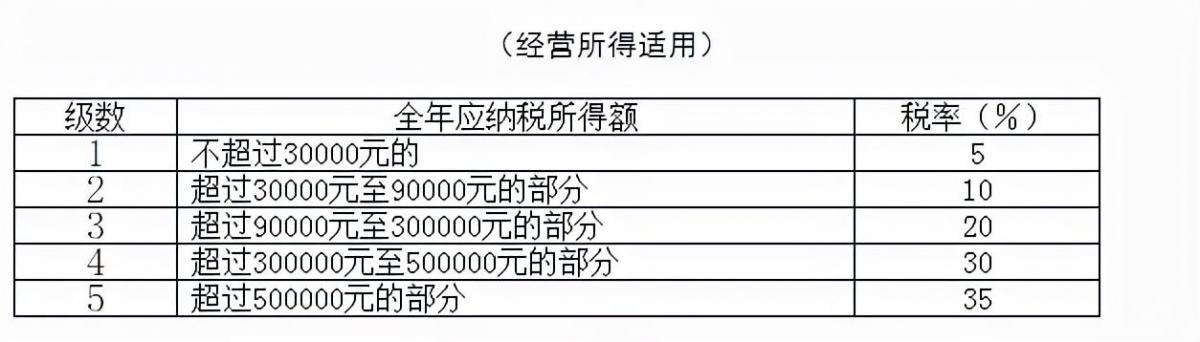 经营所得适用百分之五至百分之三十五的超额累进税率。