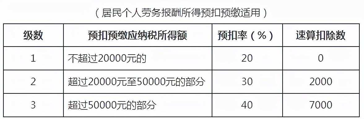 (2)居民个人稿酬所得、特许权使用费所得适用百分之二十的比例预扣率。