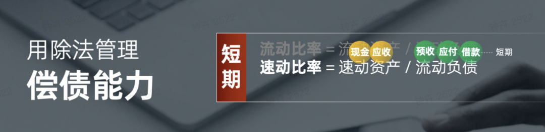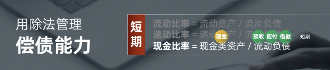 所以,控制自己有多少钱是借来的,是CEO的一个核心能力。而公式里的这组数据,反映的就是CEO的短期偿债能力。