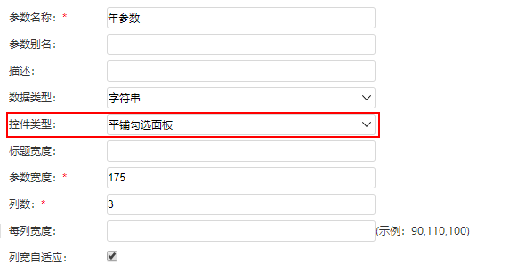 1)控件类型选择“平铺勾选面板”,如图: