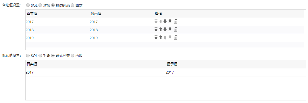 2)年参数的备选值和默认值设置如下: