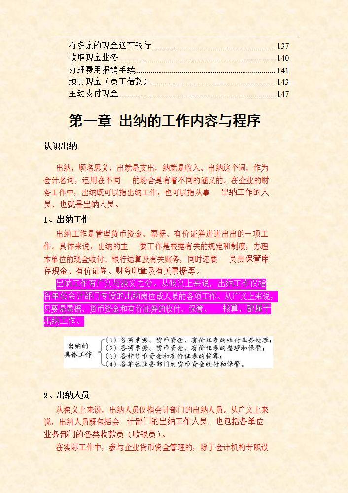 出纳是会计的一种,在财务上,出纳管钱不管账,做出纳要求的是要细心,虽然说出纳的工作难度比会计低一点,但是工作的内容完全不少于会计。现金业务、银行存款业务、收支对账、填制凭证,想要把出纳的工作做好,不花点时间去研究它是不行的!