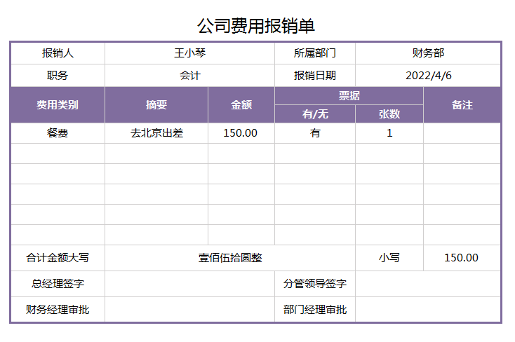 公司费用报销单