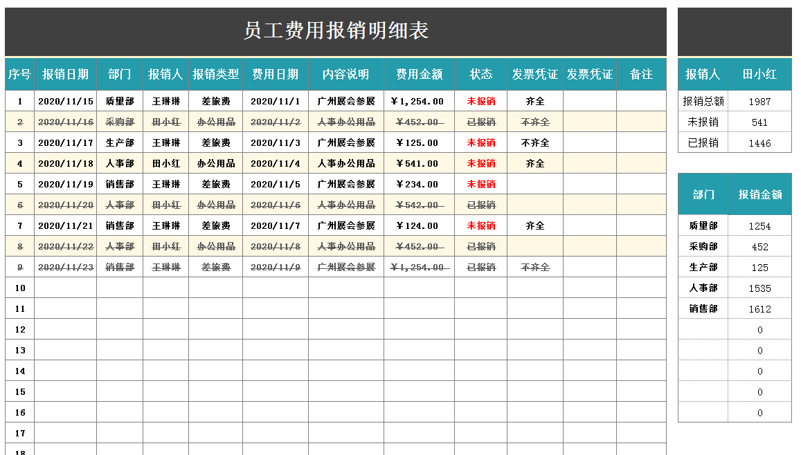 员工费用报销明细表