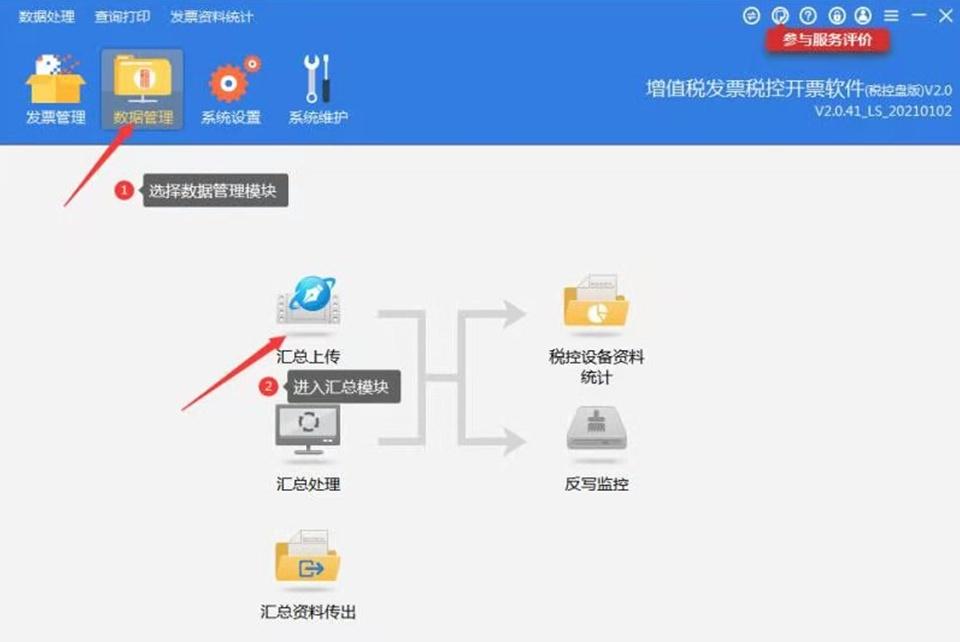 步骤1:汇总上传路径。点击【数据管理/数据管理首页/汇总上传】;