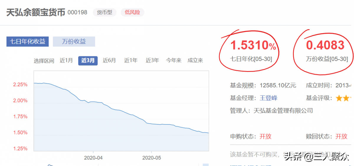 比如以昨日7日年化收益率1.5310%(7日平均万份收益1.5310%*10000/365=0.4195元,略高于0.4083元,即万份收益处于下降趋势)计算复利收益。