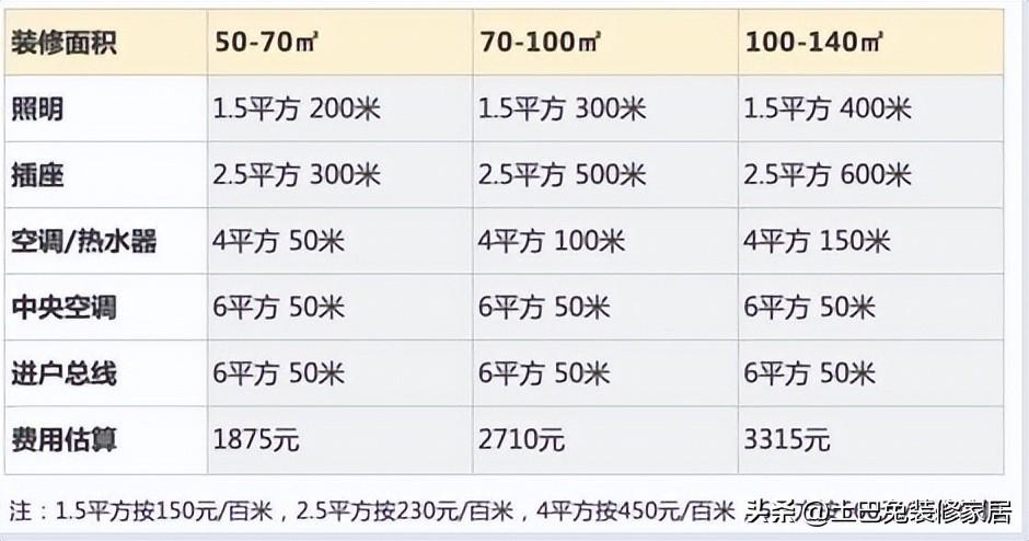 电线用量估算: