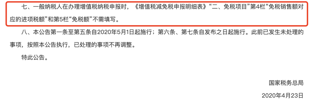 一般纳税人在办理增值税纳税申报时,《增值税减免税申报明细表》“二、免税项目”第4栏“免税销售额对应的进项税额”和第5栏“免税额”不需填写。自发布之日起施行。