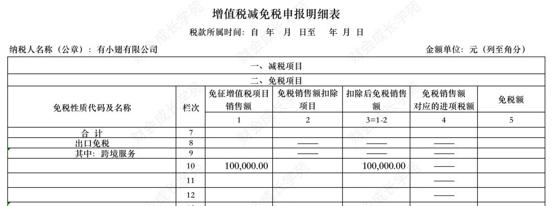 其次,增值税减免税申报明细表