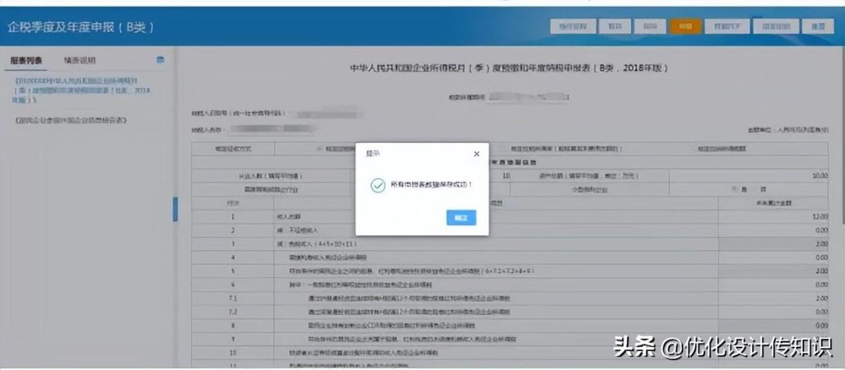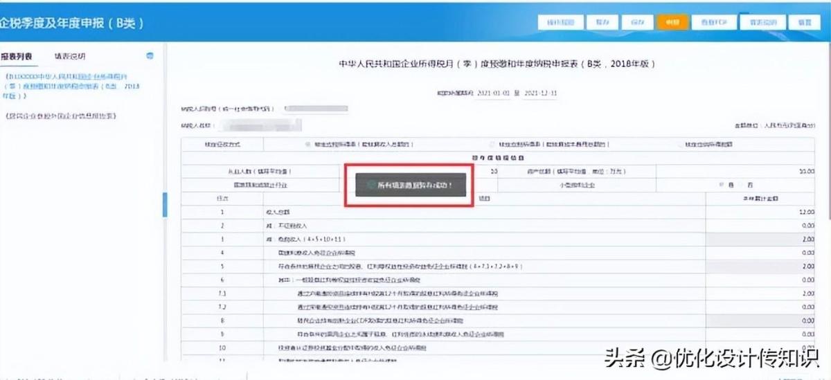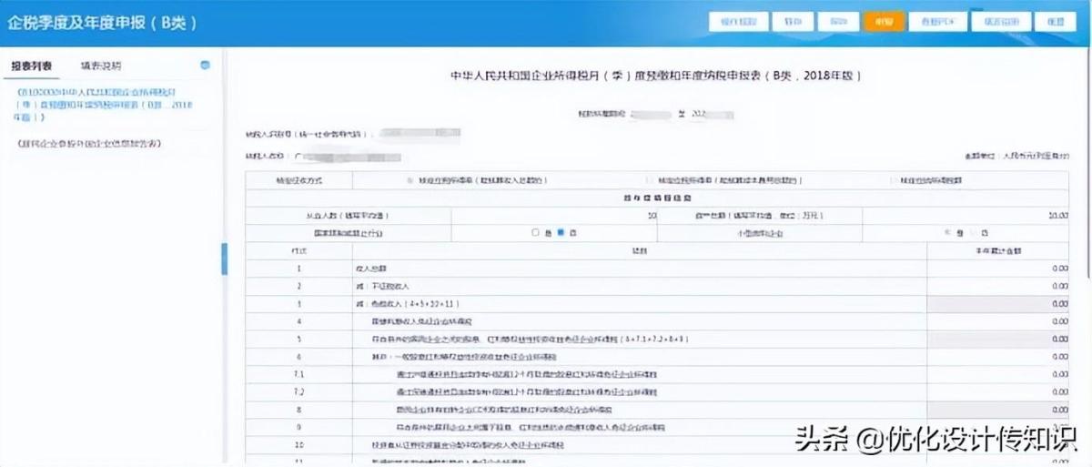 3.进入到申报表填写界面,可以看到在页面会显示一个主附表的导航栏,可以点击链接在主表和各个附表之间进行切换。如图所示: