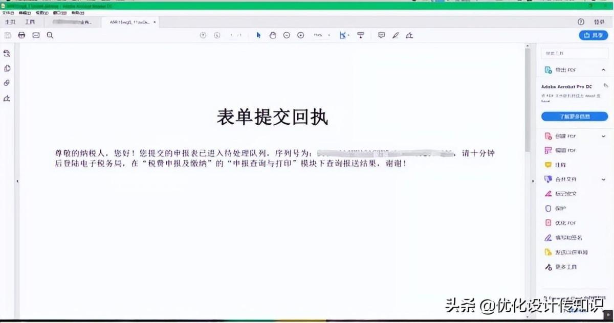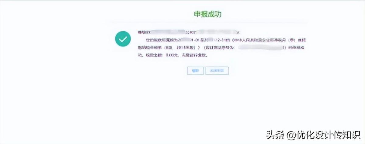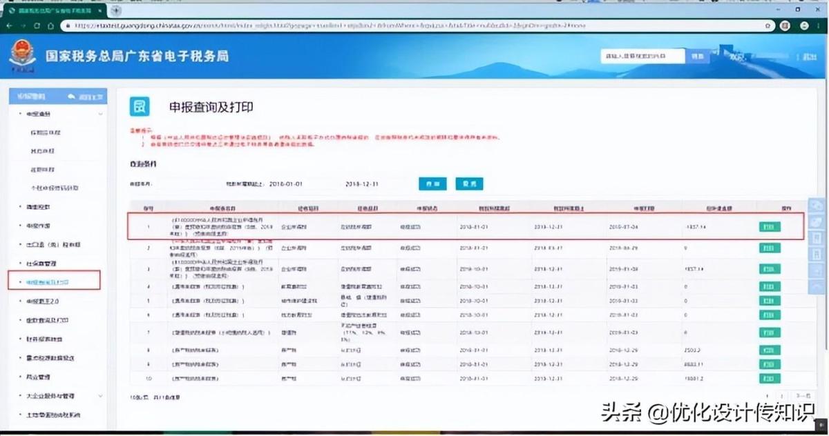 13.提交成功后,显示表单提交回执页面,纳税人可在办税桌面–我要办税–税费申报及缴纳–申报查询及打印里查询申报结果。如图所示: