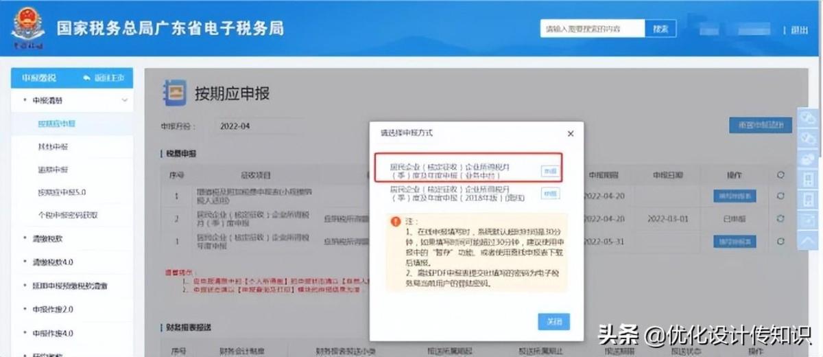 1.操作路径:办税桌面–我要办税–税费申报及缴纳–申报清册–按期申报–企业所得税(年报)。如图所示: