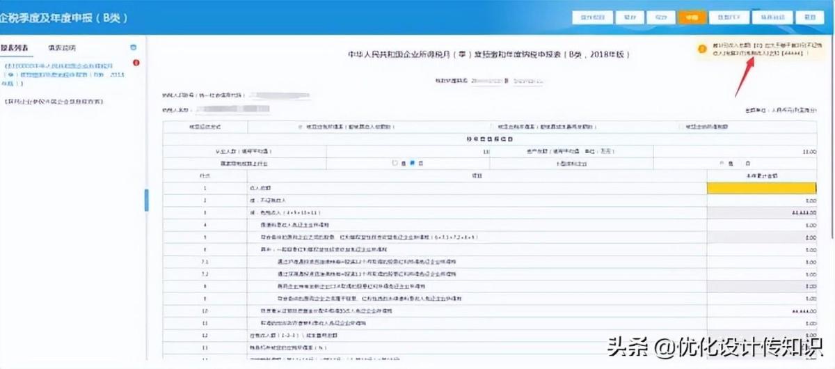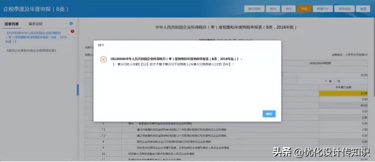 4.系统提供了完善的表内、表间的自动计算和校验的功能,纳税人根据实际业务填写数据,即可完成从附表到主表的计算。填写数据完成后,如校验不通过,页面出现黄色格子,移动鼠标至该格子,页面显示校验不通过的提示。如图所示: