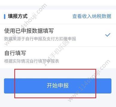 第二步成功点击进入新的界面,然后开始勾选使用已申报数据填写,点击开始申报。
