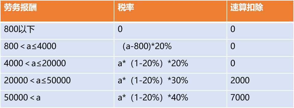 个人劳务报酬所得税=应纳税额*税率-速算扣除