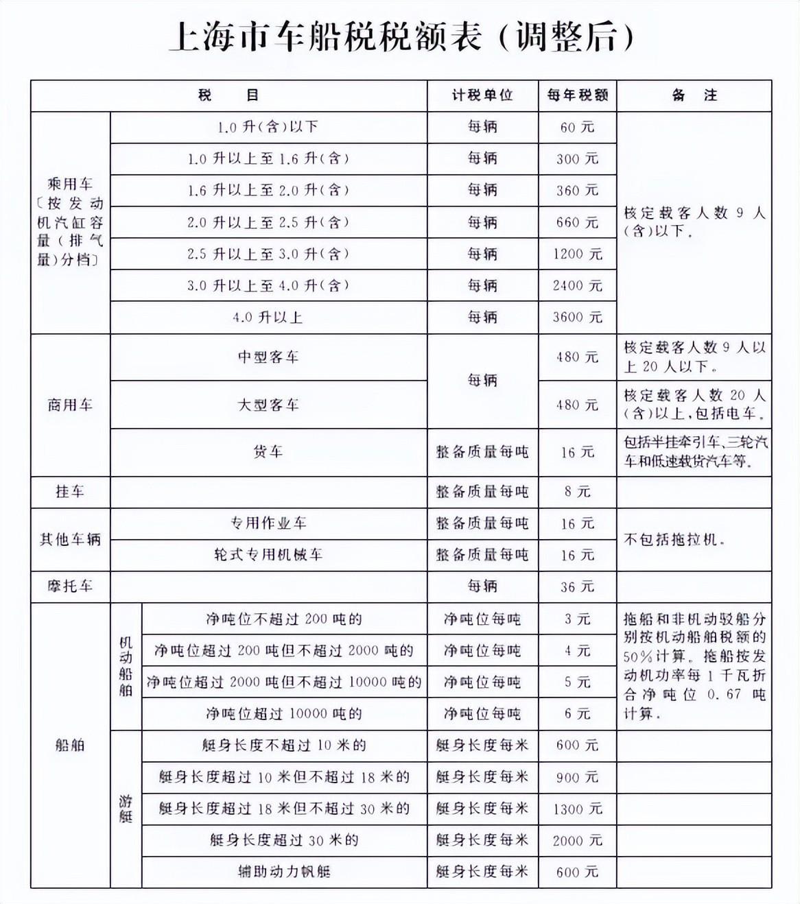 下表是上海车船税的标准: