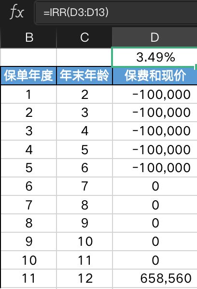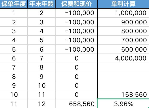 所以一定要记住,需要在第11个保单年度处填入回报,不是在第10个保单年度。