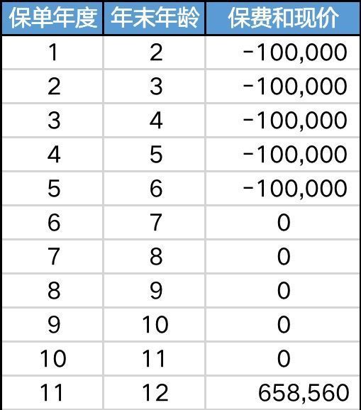 重点提醒,现金价值658560为第10年末的数值,而第1笔保费为第1年初的投入。