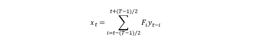 加入长度为 T 的窗函数后,在时刻t的低频滤波变为该时间序列 y 和过滤函数 F 在这个窗口内的卷积: