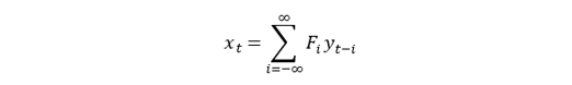 在理论上,在任意 t 时刻的低频滤波(用 x_t 表示)在数学上可以表示为该时间序列 y 和过滤函数 F 在整个时域上的卷积,即