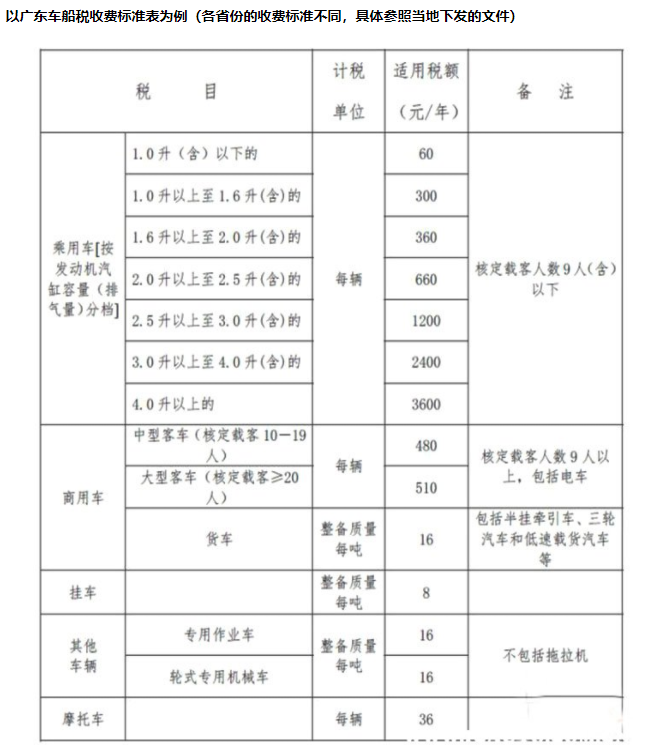 看到了吧!北京的车船税并不是很便宜,甚至还贵了很多。同样拿2.8排量的奥迪A6L来说,在北京交车船税就是1920。而对于大中型客车来说,中客960,大客1140。都贵了很多。有人会说了,这才贵了100多块钱,没什么。那么我们看看广东省的车船税。