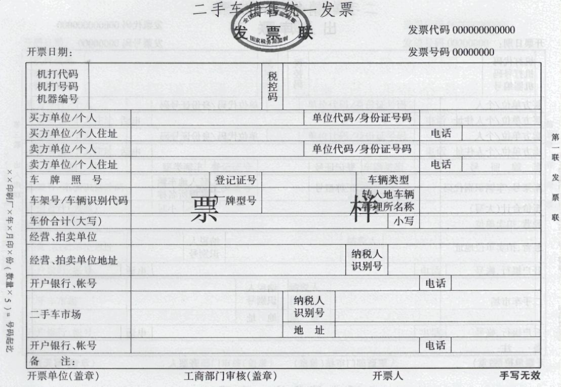 首先需要办理过户,买方向公安机关交通管理部门申办车辆转移登记手续时,需要提供《二手车销售统一发票》。这就需要去二手车交易市场开具《二手车销售统一发票》,发票样式如下: